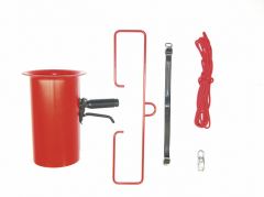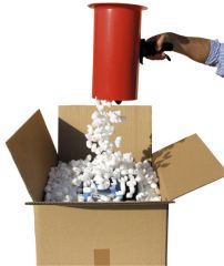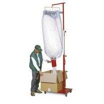 A zsákos kiszerelésű térkitöltő termékünk felhasználását nagyban megkönnyíti ez a töltő, adagoló berendezés. Csomagoláskor egyszerűen és gyorsan tölhető a térkitöltő chips. A zsák szájára egy a tartozékok között található gumipánt segítségével rögzíthető a kiperemezett műanyag cső. Ezután a zsákot lefele fordítva felakasztható a megfelelő helyre egy akasztó, egy csiga és egy kötél segítségével. Ezek a tartozékok az egységcsomag részét képezik. A csövön található kar segítségével adagolható a kívánt mennyiség.